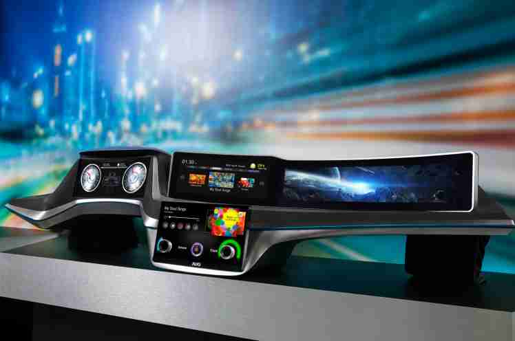 28国际超大型异型切割曲面驾驶舱显示器